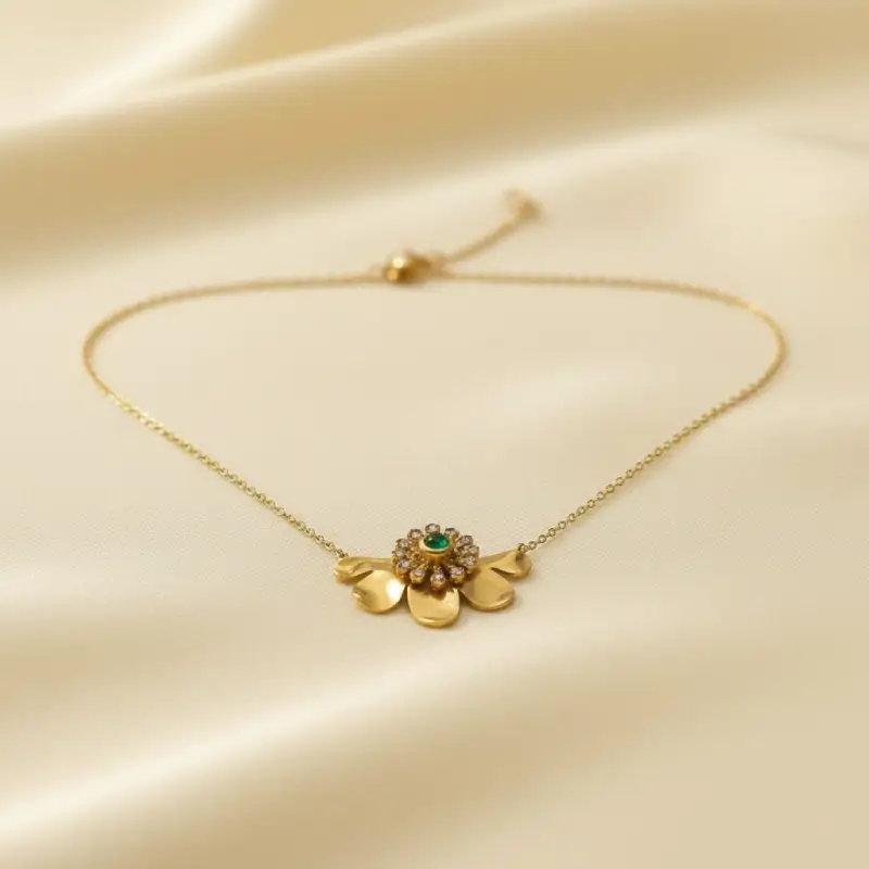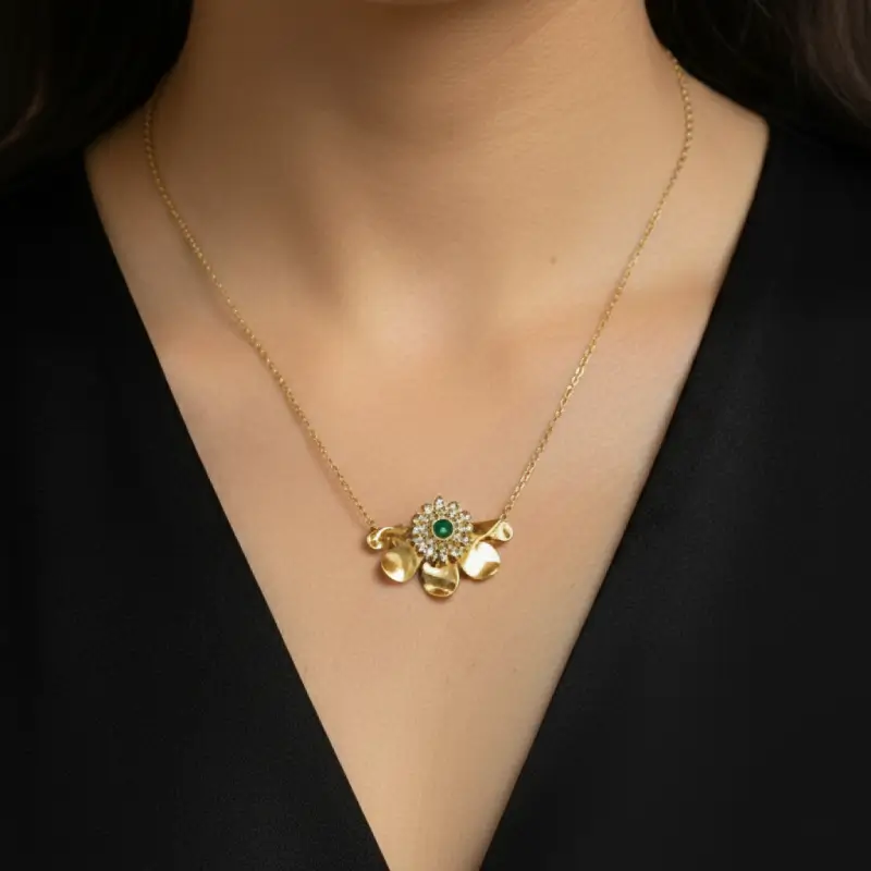 Add a touch of luxury and symbolism to your jewelry collection with the Gold Plated Stainless Steel Anti-Tarnish Gardenia Emerald Clover Pendant Necklace. Crafted from premium stainless steel with a rich gold-plated finish, this necklace features a beautifully designed clover pendant inspired by gardenia elegance, accented with a vibrant emerald-toned stone. Representing luck, elegance, and timeless beauty, the pendant is protected with an anti-tarnish coating to ensure lasting shine. Lightweight and skin-friendly, it is perfect for daily wear, special occasions, or thoughtful gifting.