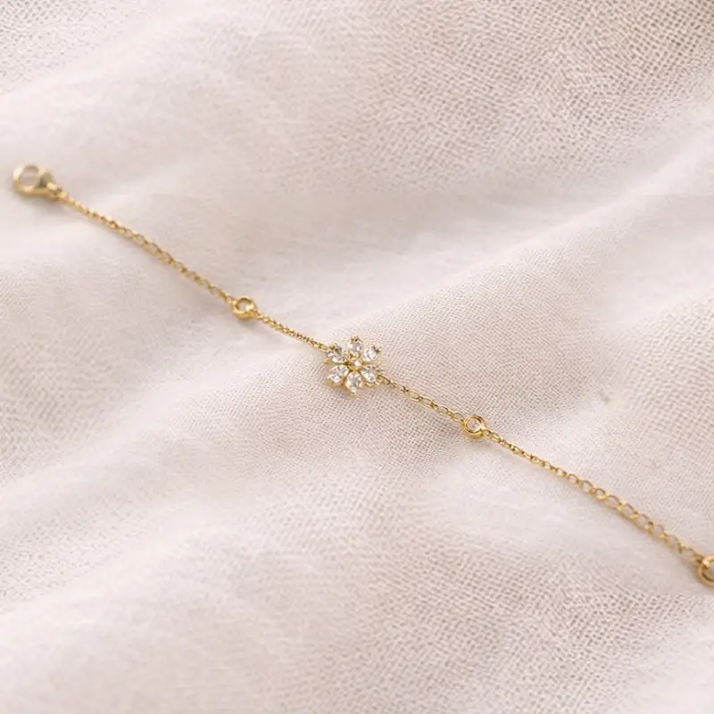 Gold Plated Stainless Steel Anti-Tarnish Geometric Flower with Stone Bracelet