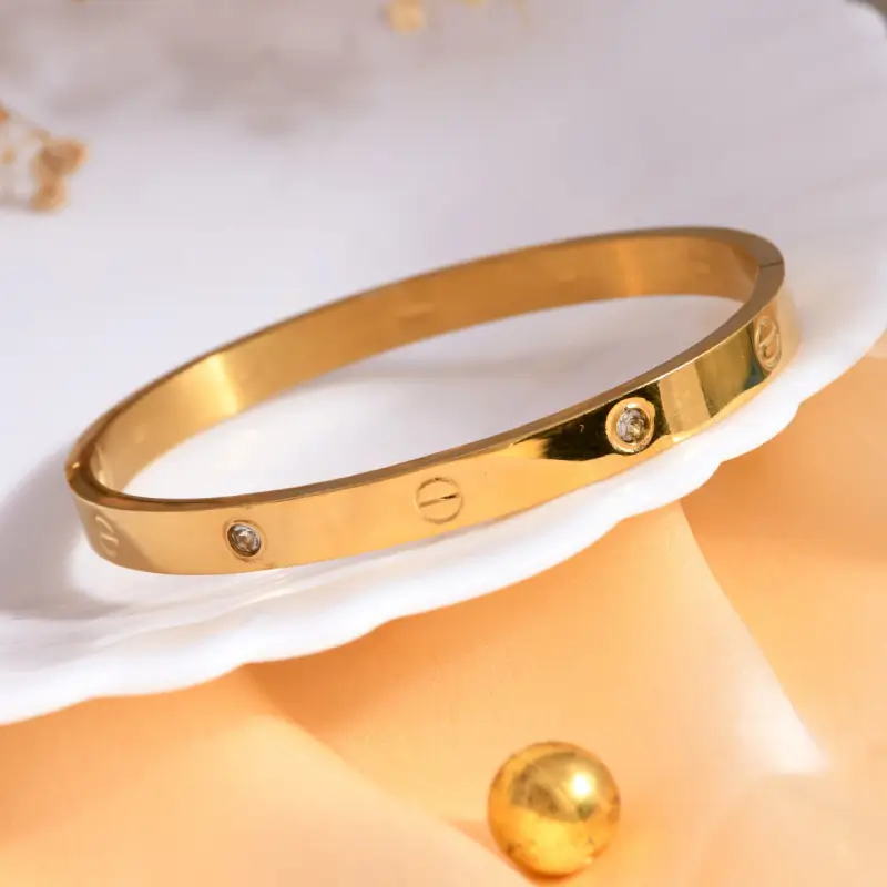 Gold Plated Stainless Steel Anti-Tarnish Love Band Bracelet