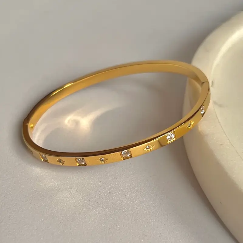 Gold Plated Stainless Steel Anti-Tarnish Vera Studded Band Bracelet