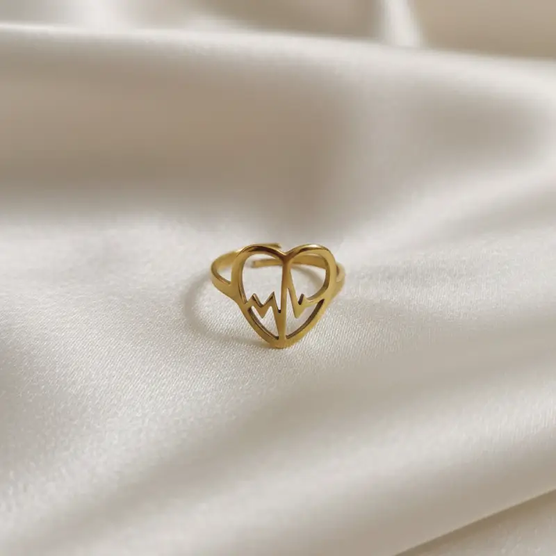 Gold Plated Stainless Steel Anti-Tarnish Adjustable Heart Ring