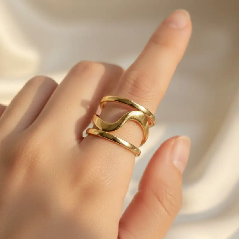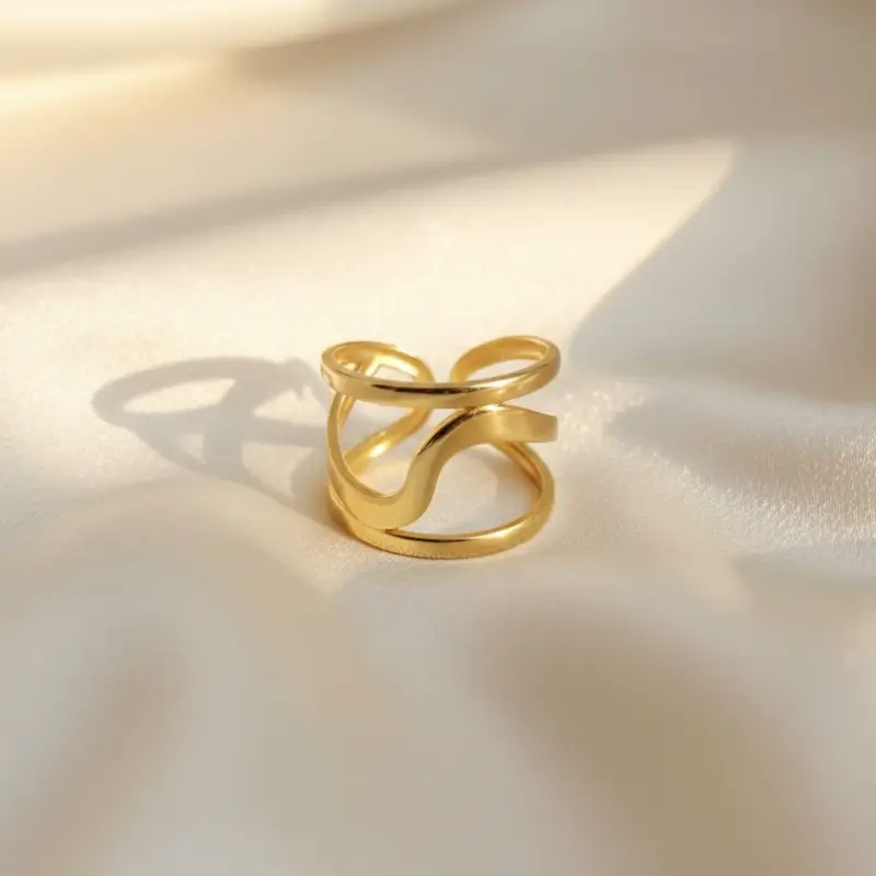 Gold Plated Stainless Steel Anti-Tarnish Adjustable Wavy Ring