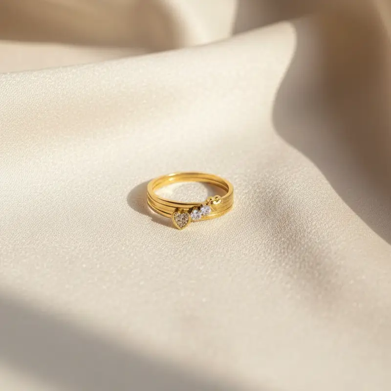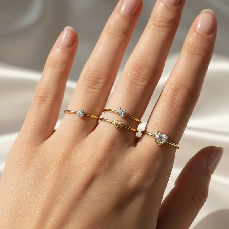 Gold Plated Stainless Steel Anti-Tarnish Heart Clover Stacking Ring